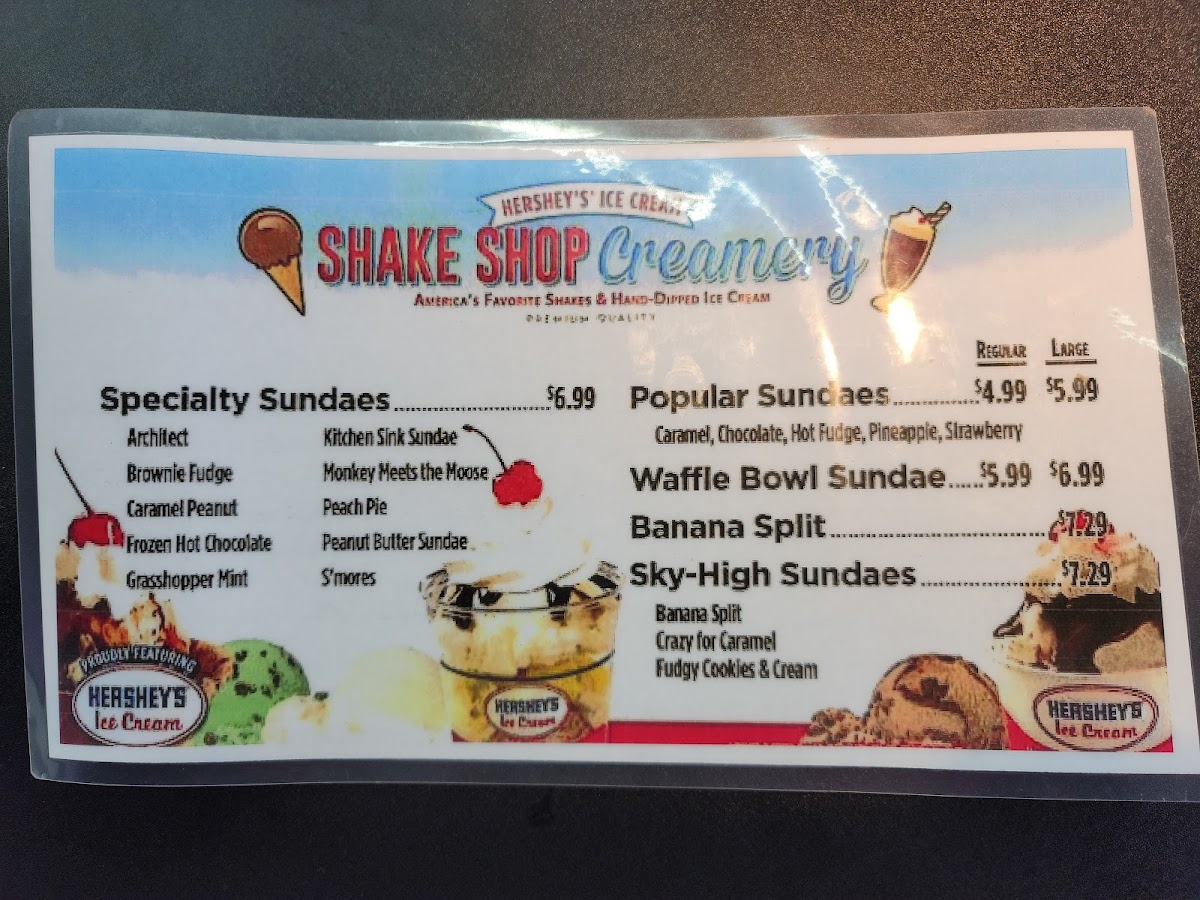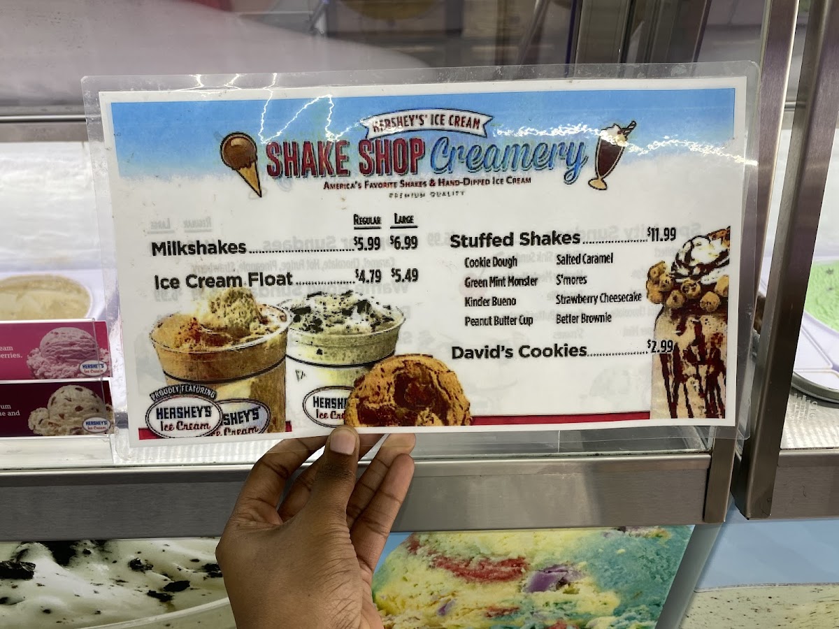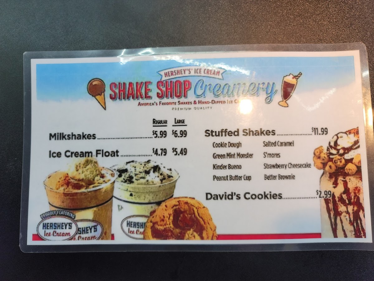 At Hershey Shake Shop, the menu is a dessert lover’s dream with a wide variety of sweet treats that blend classic favorites with indulgent creations. You’ll find the creamy Milkshakes priced around $14.99, customizable with any ice cream flavor you love, alongside the striking Waffle Bowl at about $13.99 - perfect for piling high with toppings and rich ice cream. The Waffle Cone offers another playful crunch at roughly $12.99, with options for chocolate or vanilla coatings and sprinkle or peanut add‑ons. Classic favorites like Popular Sundaes come in at approximately $13.99, featuring sauces such as caramel, chocolate, and strawberry drizzled over scoops of ice cream. Sweet bites continue with David’s Cookies for about $9.99, a simple yet satisfying complement to the creamy desserts. Beyond those, the menu also includes other crowd‑pleasers like stuffed shakes, sky‑high and specialty sundaes, banana splits, and hand‑packed ice cream at various price points, making it easy to find something delightful whether you’re craving a simple cone or a loaded sundae.